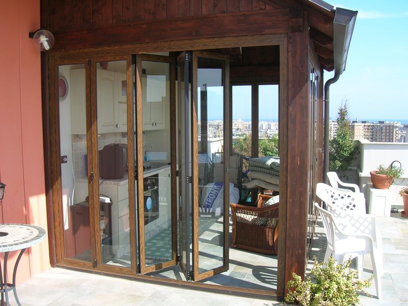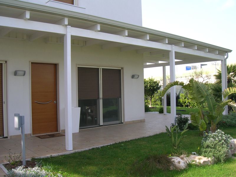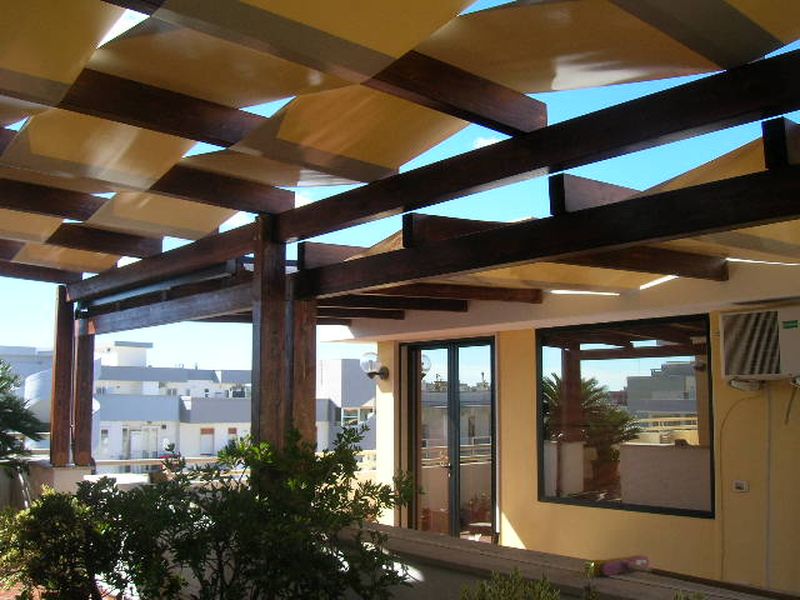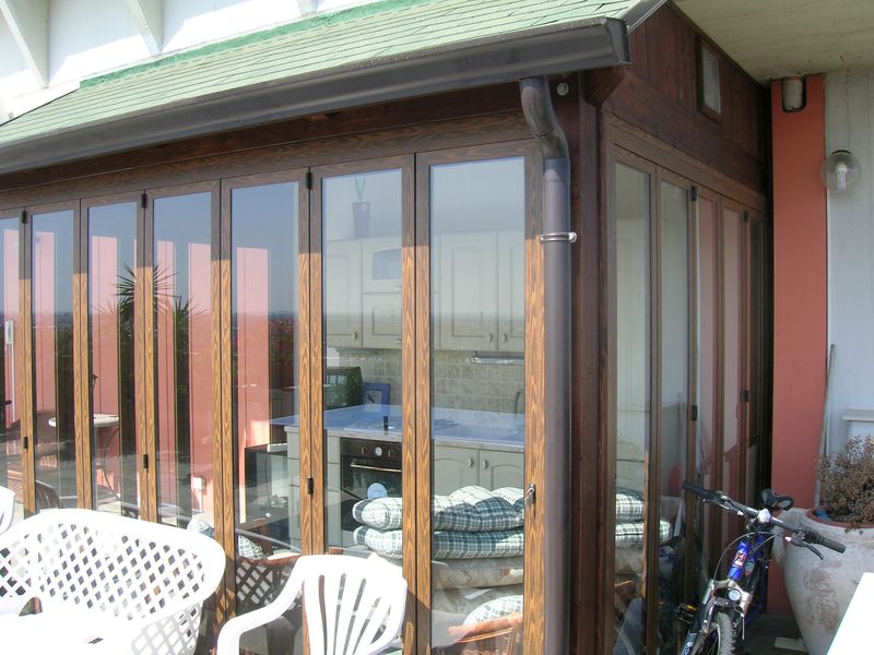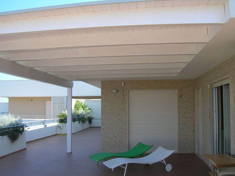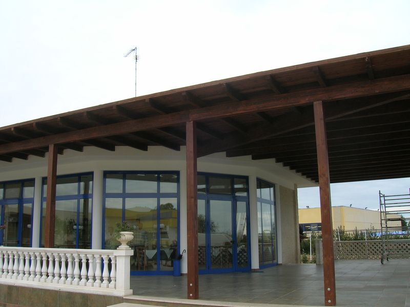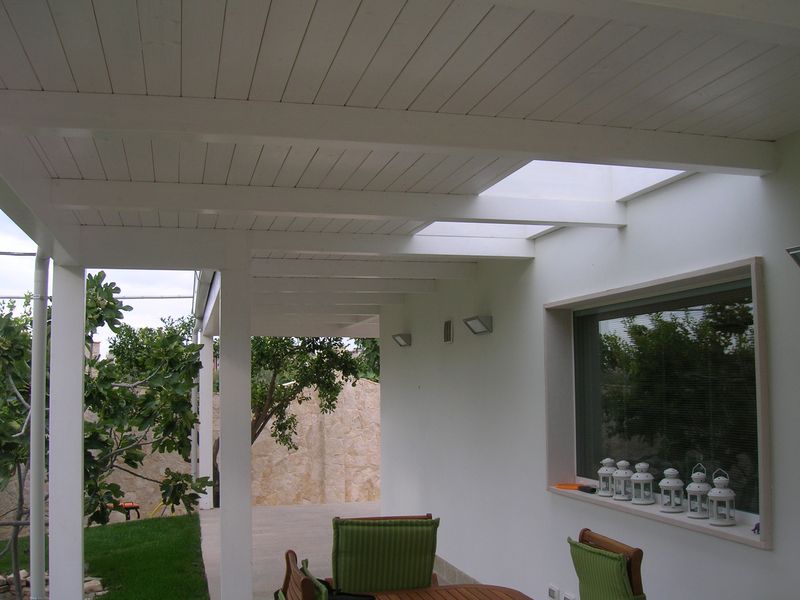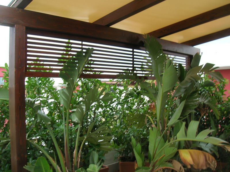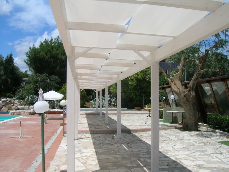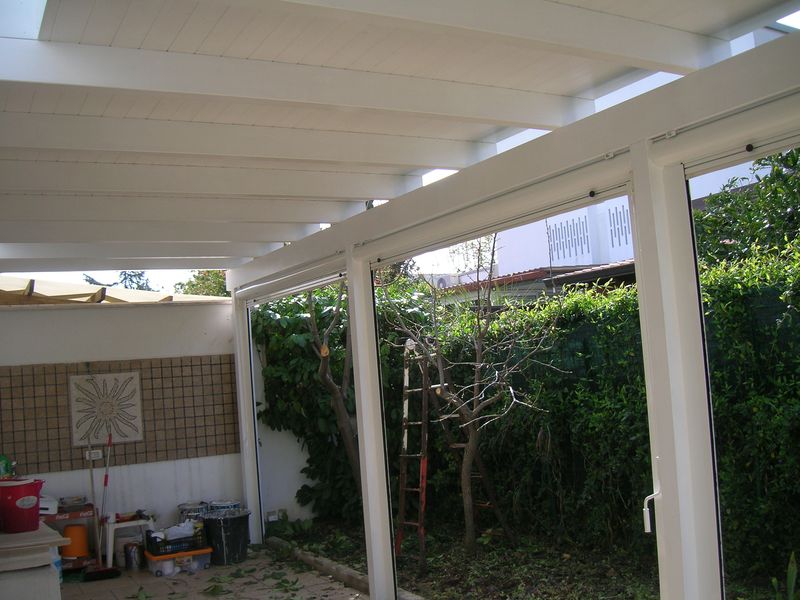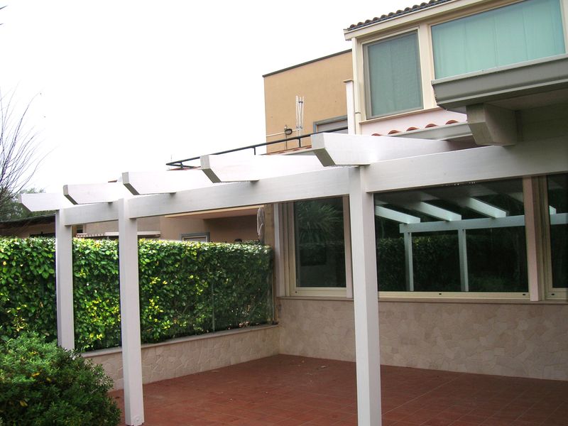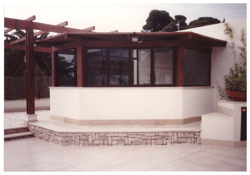 Pergole, pergolati, frangisole e vetrate panoramiche scorrevoli.