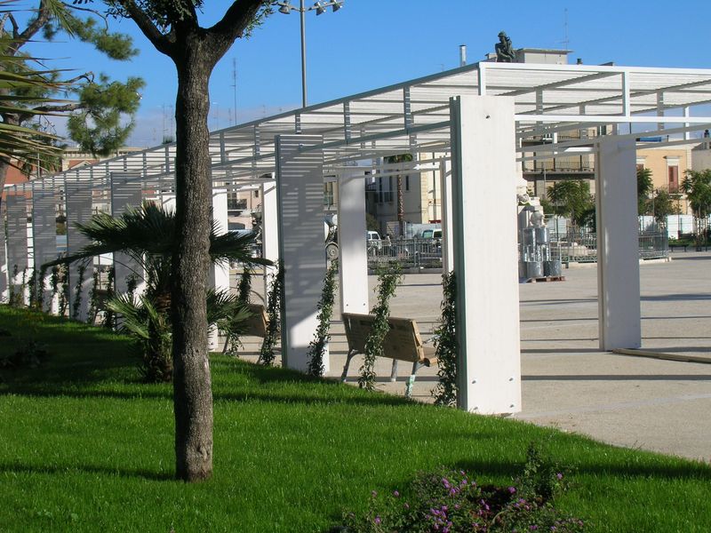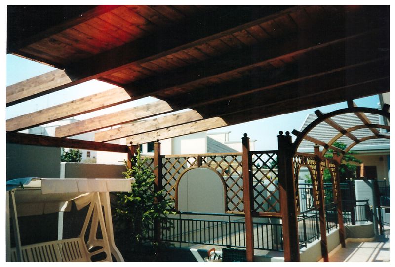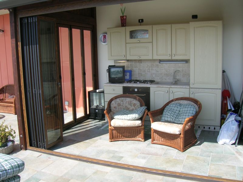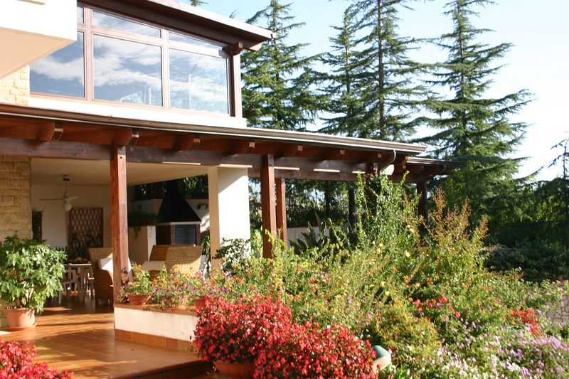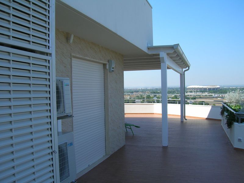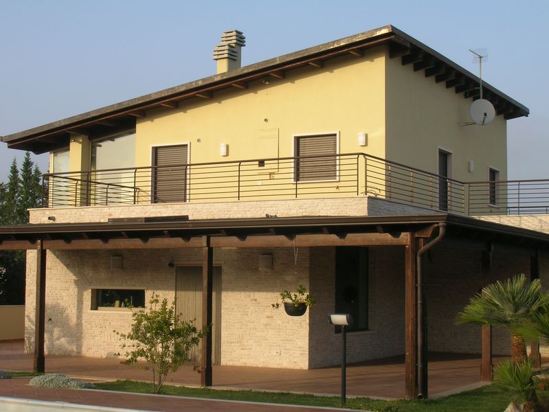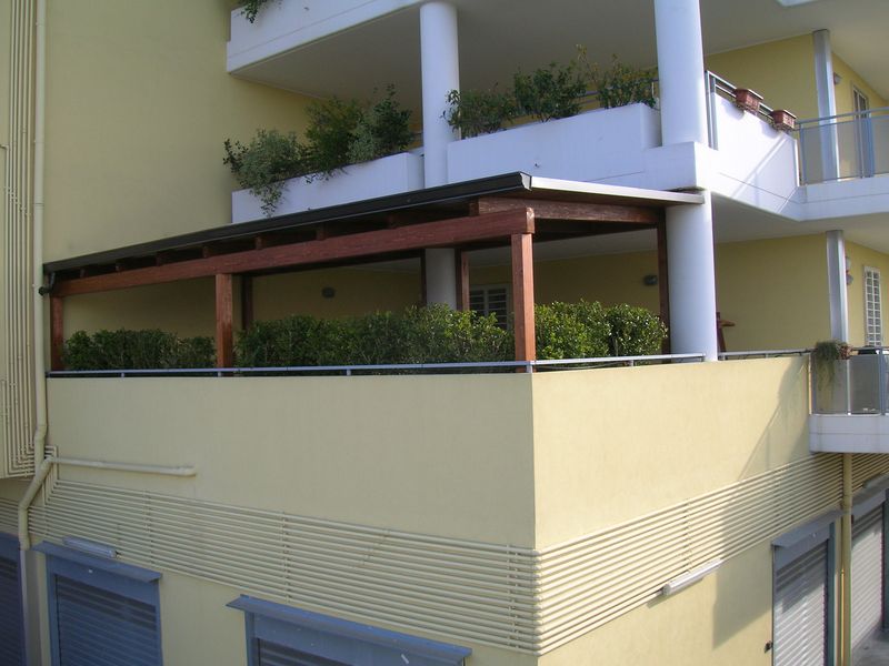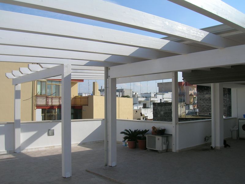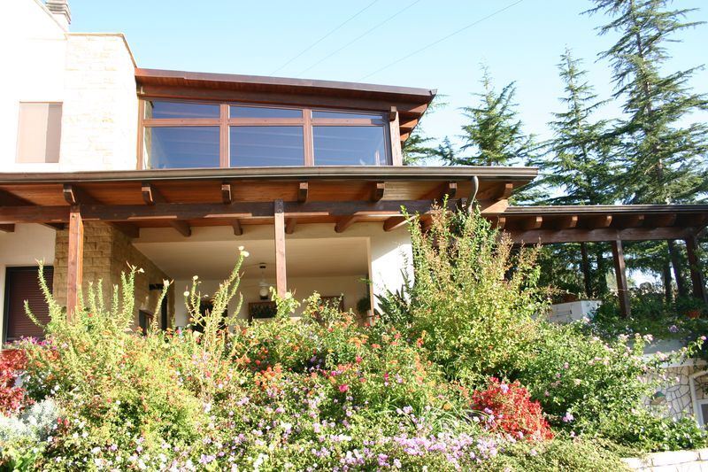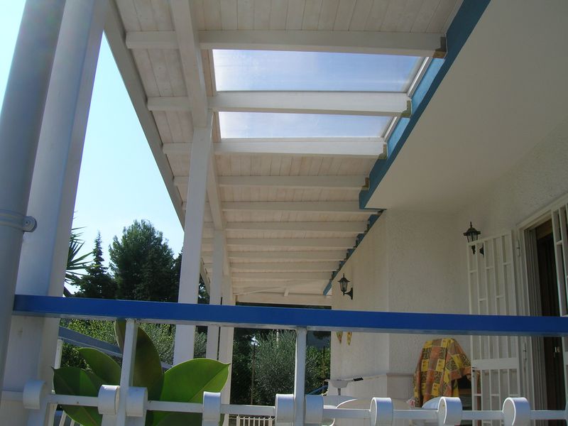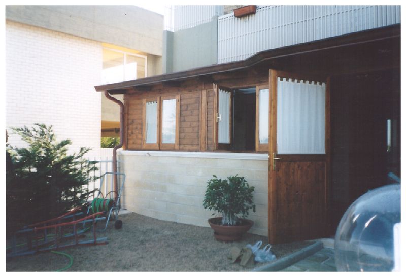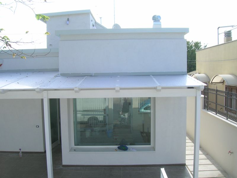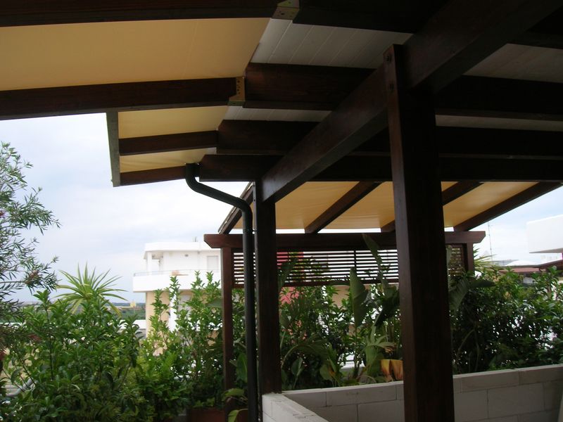 Pergole, pergolati, frangisole e vetrate panoramiche scorrevoli.